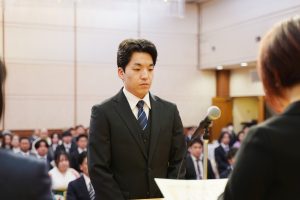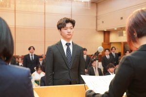 式の最後には、2年生代表からの送辞、3年生代表による答辞が述べられました。