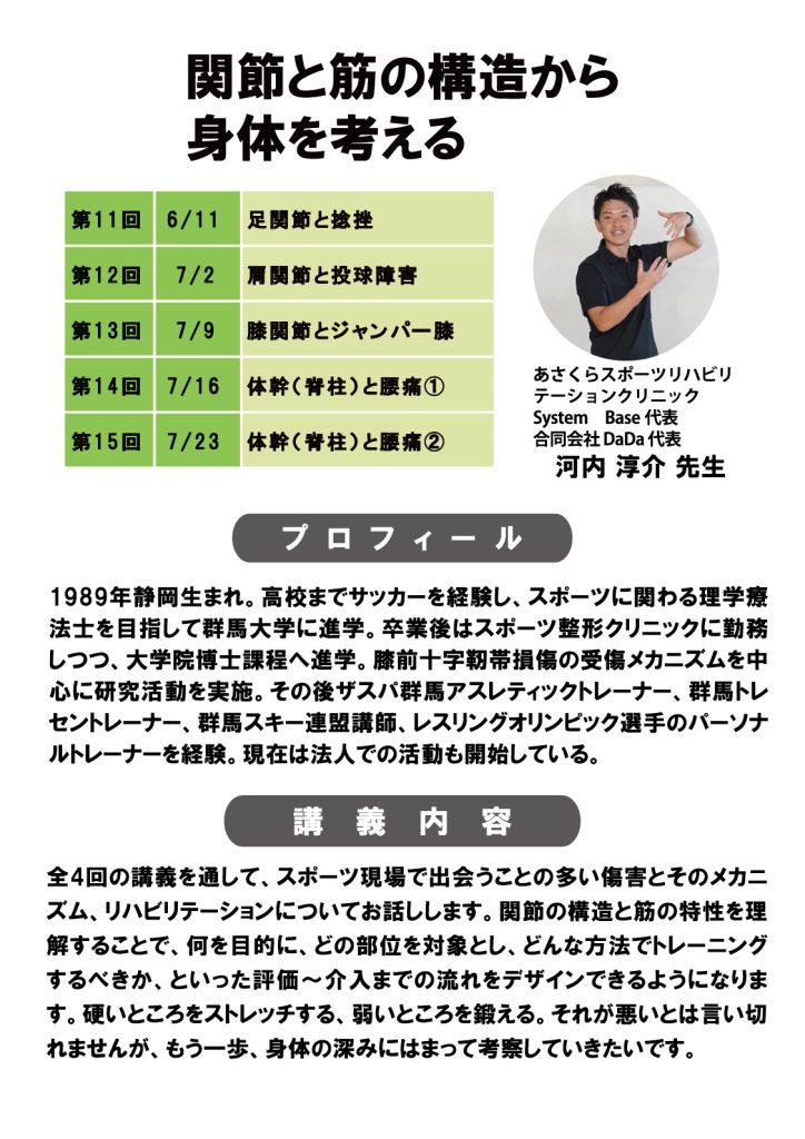 Dコース:関節と筋の構造から身体を考える(全5回)/河内 淳介 先生