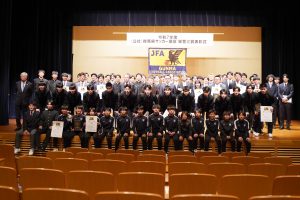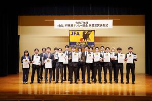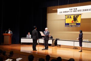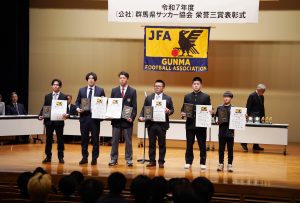 3/21(土)、群馬県サッカー協会栄誉三賞表彰式が公社総合ビルで行われ、本校サッカー部が第35回全国専門学校サッカー選手権大会ベスト8の功績を讃えられ、「優秀チーム賞」「優秀選手賞」「優秀指導者賞」を受賞しました。